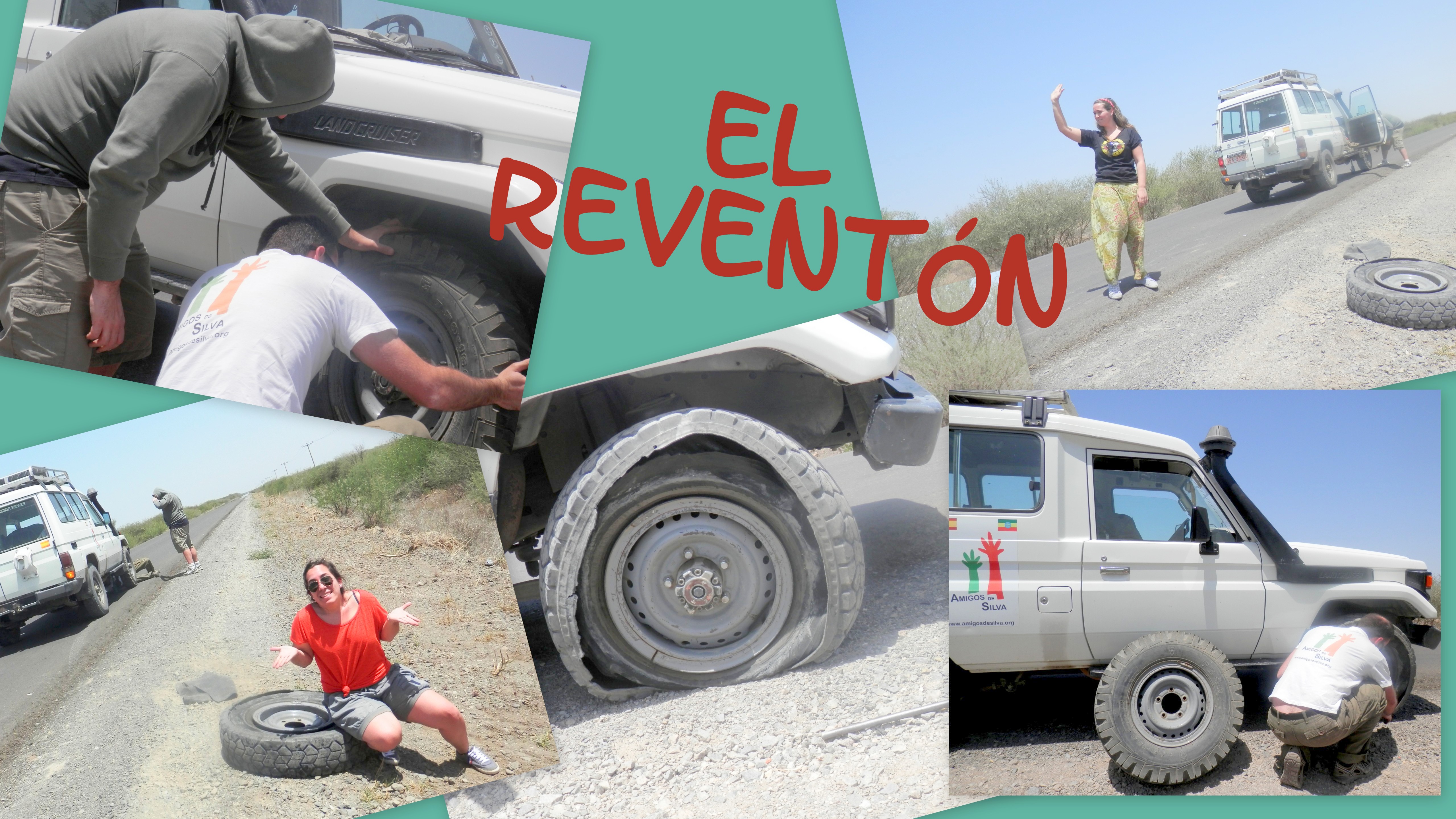 Nos quedaban todavía otras aventuras por vivir ese día; un pequeño timo en la comida, un etíope mirón en el baño, la invasión de las botellas de agua… Y la mejor: la primera rueda reventada de Amigos de Silva, ya rodeados de algo bastante parecido al desierto, que dio pie al proceso «moreneo» y nos dejó muy limpios y con las manos calentitas.