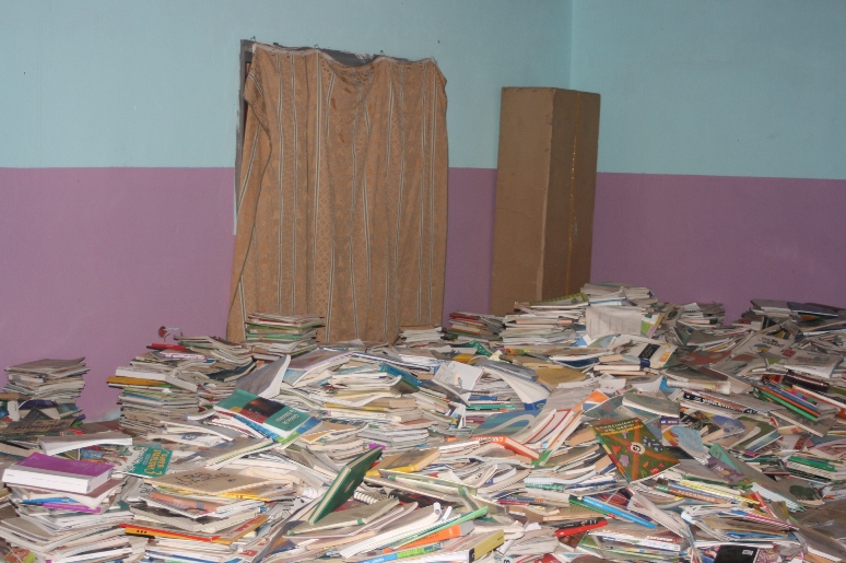 Vemos las aulas (casi vacías ya que justo esos días estaban empezando las clases y todavía faltaba mucha gente), el internado nuevo recién construido, los baños, puestecitos montados dentro de cole en los que se venden chucherías (y calcio en piedra, que también se come), y finalmente lo que acabaría por convertirse en mi obsesión con el paso del tiempo: la biblioteca, o más bien, una sala LLENA de libros tirados por el suelo que reciben como donación y que nadie usa puesto que es tal la cantidad que no saben ni lo que tienen.
