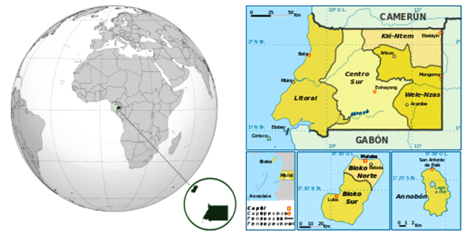 “Guinea Ecuatorial es un país soberano centroafricano, formado por 7 provincias (divididas a su vez en 30 municipios), y cuya capital es la ciudad de Malabo, antiguamente conocida como Santa Isabel.